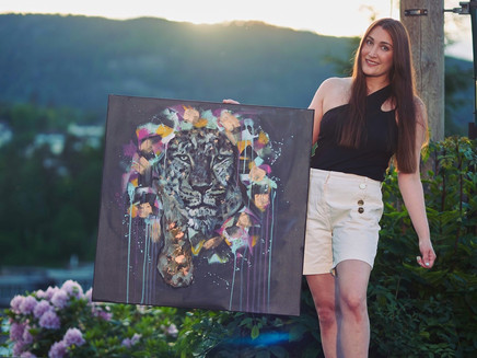 After a long time, I decided to pick up the brush again and make another lion for the series. So here is "King Kavuh" 2023. This piece is already sold, and will be shipped to USA right after my expo "I see RED" at Radisson RED Oslo Økern 22. of June. It will be made available as a limited fineart print with golden pigments by hand.